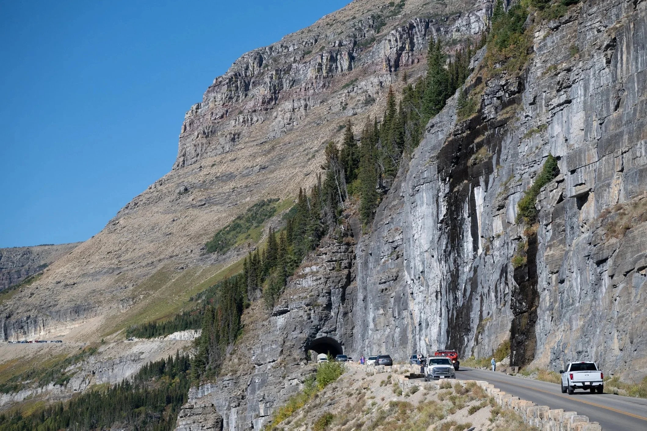 Glacier has just over 1 million acres and only one epic road (Going-to-the-Sun) that cuts across the Park. There is no other road. Much of the Park is accessible by foot only. Going-to-the-Sun is single-lane each way. Cars heading west hug the cliffs, cars heading east see sheer drops to the valley here and there, and both directions experience a number of switchbacks. It’s thrilling and unbelievably scenic (you’ve never seen anything like it.) The best way to enjoy it the first time is to spend the day on a roundtrip Red Bus Tour. Then decide if you want to drive the road yourself (and remember, it will likely be a round-trip voyage.)